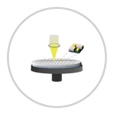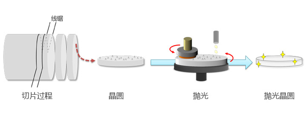 接下來是“晶體生長”。在這里,我們在晶圓上制作用于發光作為LED的薄膜。頂部是過程的俯視圖,底部是橫截面。在晶片周圍的高溫高壓環境下吹入氣體,并通過化學反應在晶片表面上沉積形成薄膜。這樣重復多次以制作多層薄膜結構。