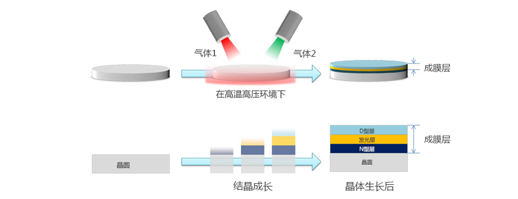 這個過程是制造LED的核心過程。2014年的藍色LED研究獲得了諾貝爾獎,之所以獲獎是因為經此過程,LED的質量得到了顯著改善,使得制造實用藍色LED成為可能。獲獎的原因之一是,正如這里所提到的,通過采用一種稱為雙流法的方法,用兩種原料氣體以供晶體生長,因此制造出更優質的晶體。此外,p型層的激活,低溫緩沖層等LED的晶體生長膜方法,在許多技術的積累之上實現了制造出本世紀的藍光LED。
